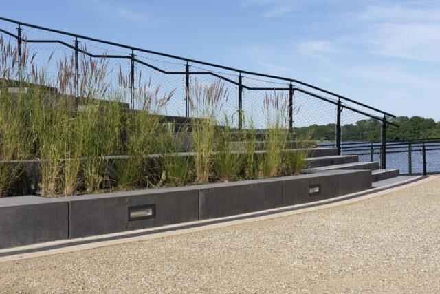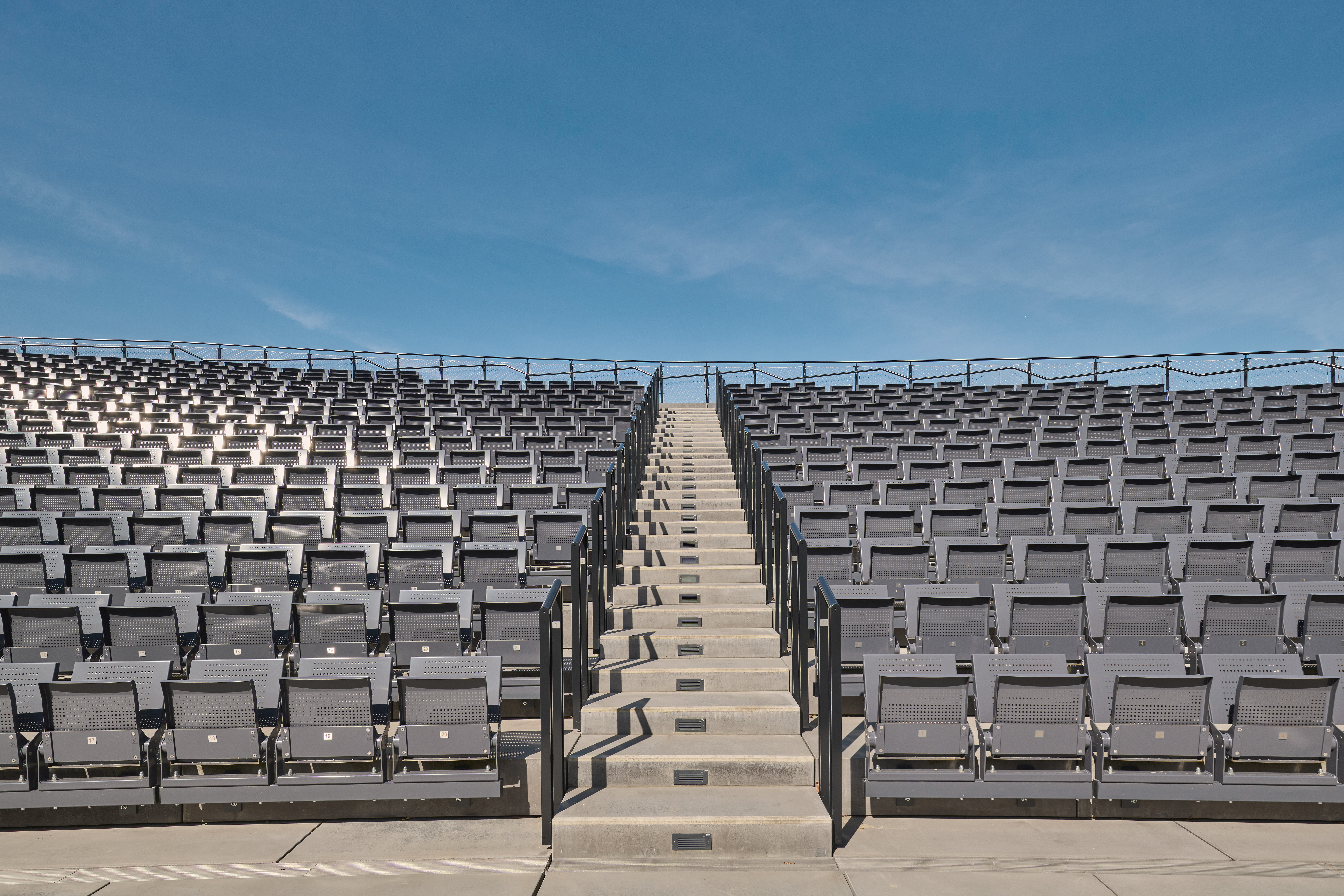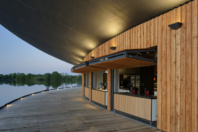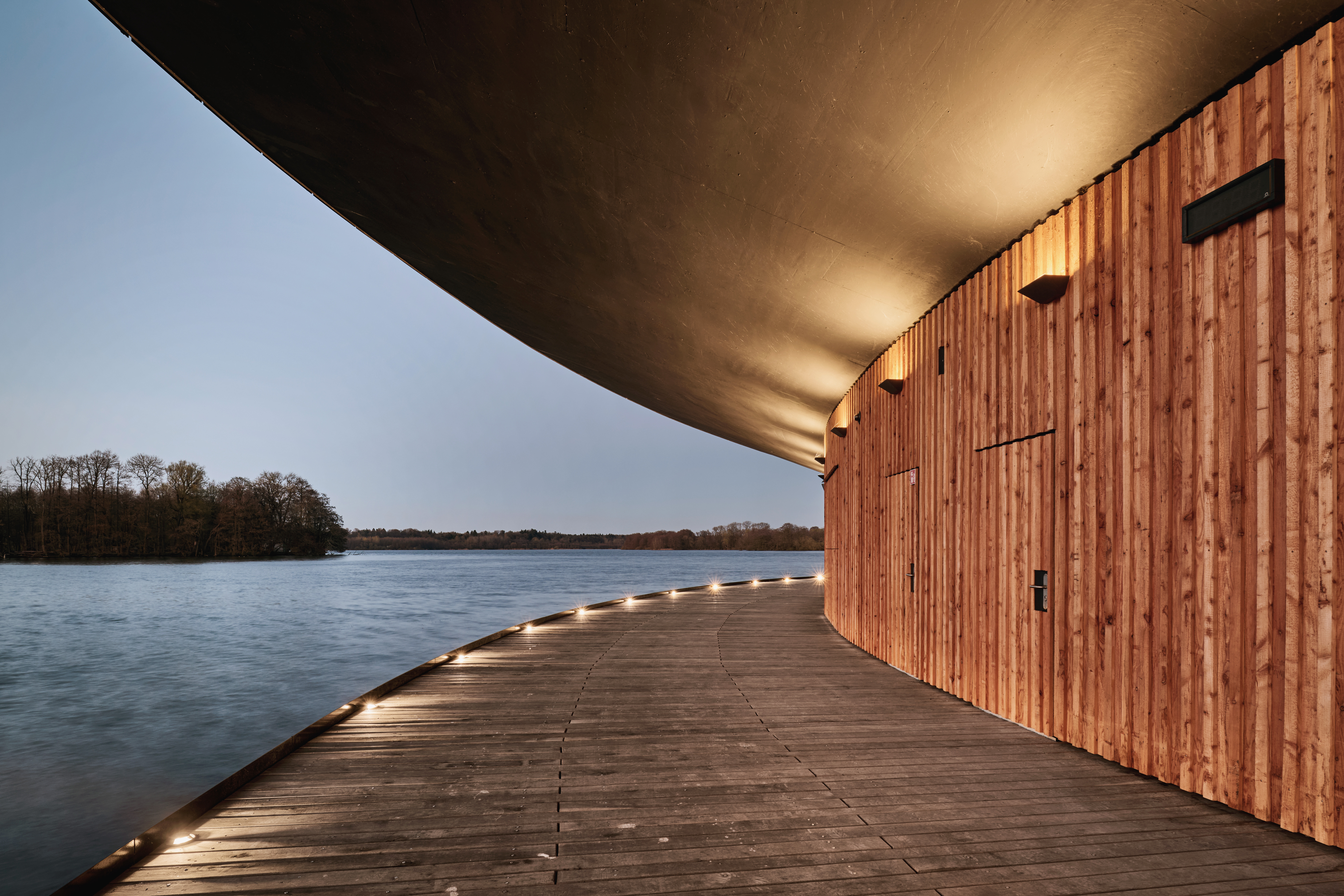 Hervorgegangen als 1. Platz aus dem Wettbewerb im Jahr 2020, war das Ziel des Entwurfs, einen Ort zu schaffen, der dem denkmalgeschützten Landschaftspark würdig ist und der angemessen auf die Gestaltung und Atmosphäre des Parks reagiert. Gleichzeitig galt es, die notwendigen Anforderungen an ein Tribünenbauwerk, inklusive der erforderlichen Nebenräume, behutsam in diese Gestaltung zu integrieren.